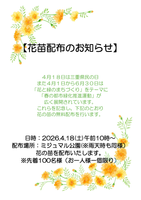 2026年4月18日(土)花の苗無料配布のお知らせ